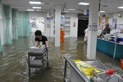 (鄭大一附院河醫(yī)院區(qū),水勢已經(jīng)淹到了門診樓一樓,萬人被困)