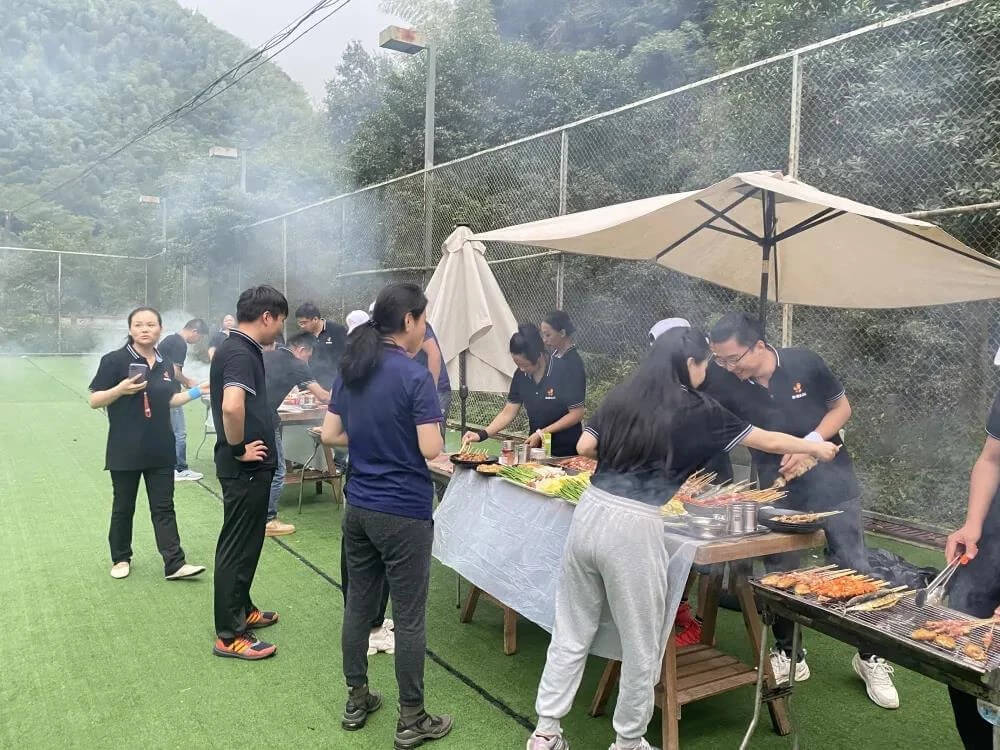轉(zhuǎn)眼天色漸暗,下面也到了大家最期待的喝酒擼串環(huán)節(jié)。大家齊心協(xié)力,很快一場可口的燒烤盛宴做好,美食相伴,開懷暢談,好不自在。