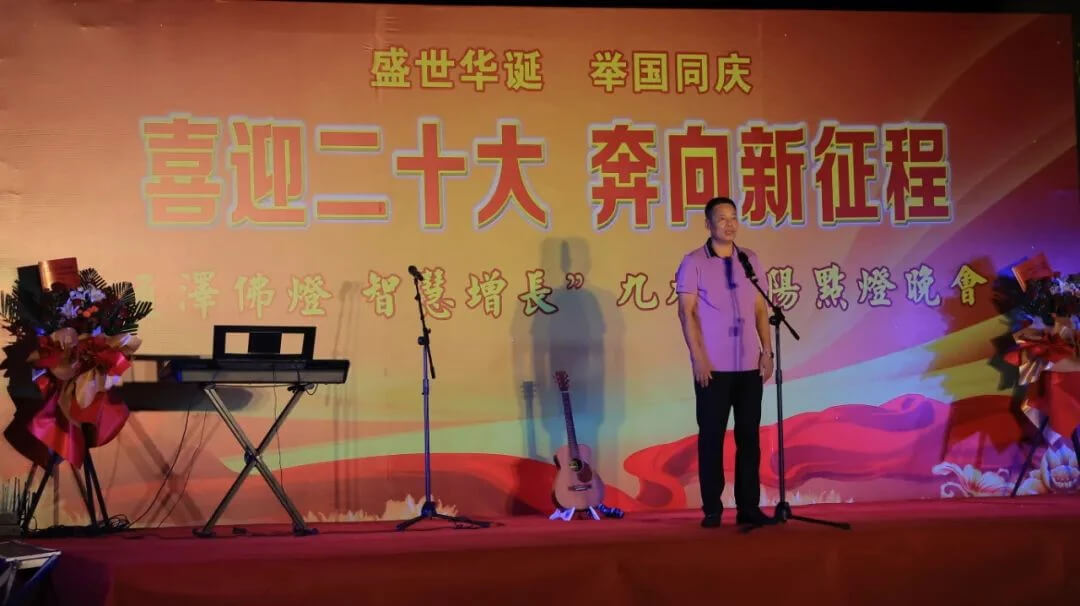陳溪鄉(xiāng)副鄉(xiāng)長(zhǎng)、鄉(xiāng)黨委委員王樹(shù)明在致辭中表示:“今夜,我們?cè)诘痦嵦聪阒?,在通澤寺大雄寶殿前開(kāi)展系列活動(dòng),唱響共產(chǎn)黨好、社會(huì)主義好、改革開(kāi)放好、偉大祖國(guó)好、各族人民好的時(shí)代主旋律,慶祝黨的二十大的召開(kāi),喜迎重陽(yáng)節(jié)的到來(lái),凈化人心、啟迪智慧,愛(ài)國(guó)愛(ài)教,增進(jìn)社會(huì)和諧,為國(guó)家富強(qiáng)、人民安樂(lè)奏響紅色樂(lè)章。”
